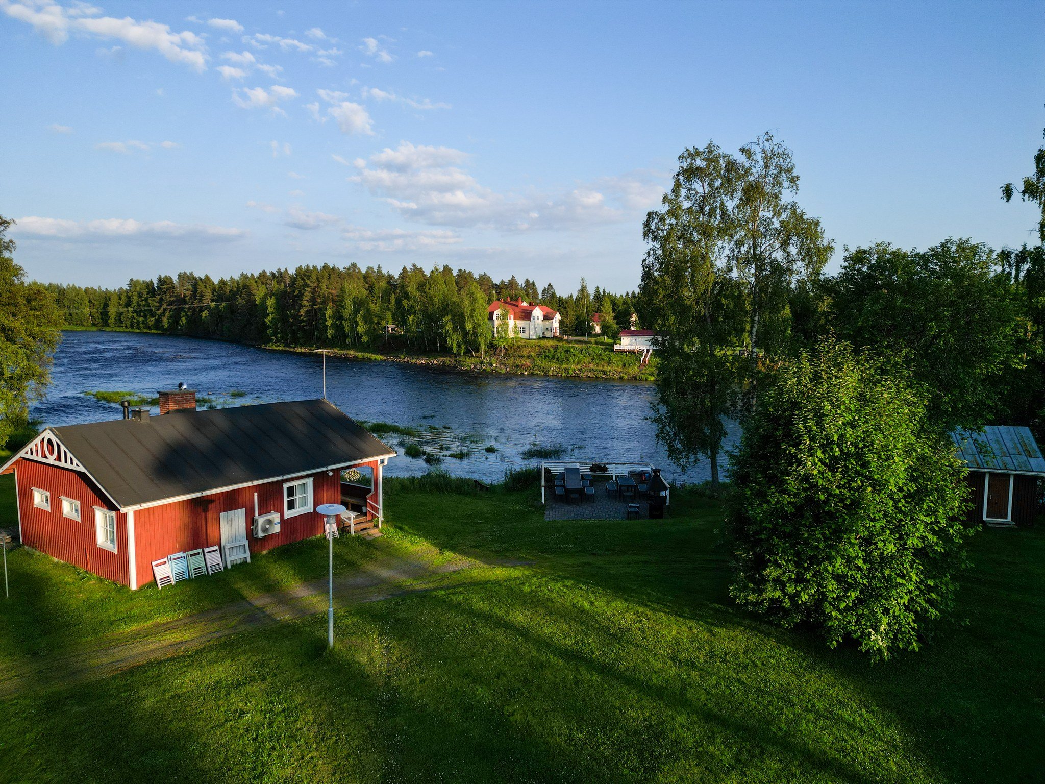 Saunan terassilla on kiva käydä vilvoittelemassa ja siitä on upea näkymä joelle.